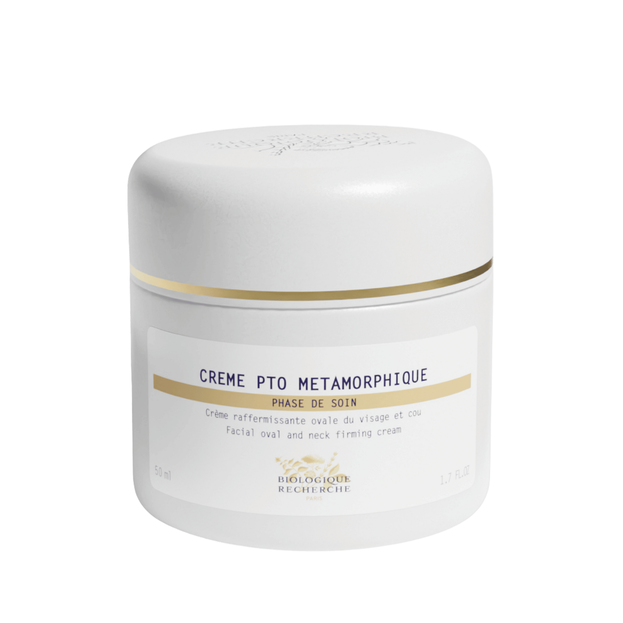 Vores ikoniske opstrammende creme, Crème ADN Métamorphique, vender tilbage i nye klæder som Crème PTO Métamorphique – forfinet gennem mange års ekspertise og avanceret hudplejeforskning. Denne luksuriøse creme er særligt udviklet til at bekæmpe synlige tegn på aldring, herunder tab af fasthed, ansigtsslaphed (ptose) og nedsat hudspændstighed. Den arbejder effektivt med at omforme og redefinere ansigtets oval samt konturerne omkring halsen. Ansigtets konturer fremstår mere definerede og harmoniske, og huden genvinder synlig fasthed og elasticitet.